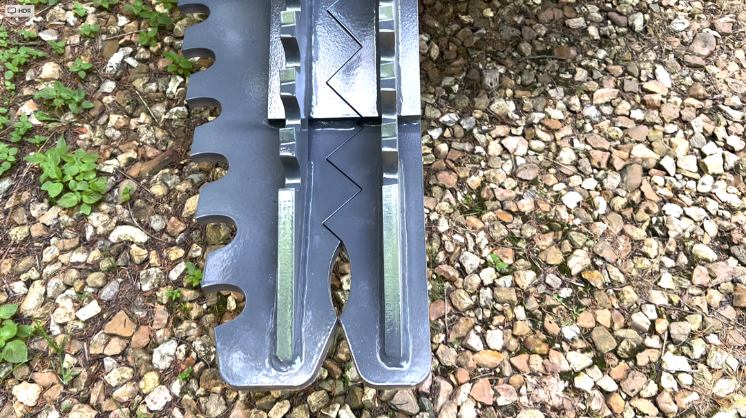 Full tree/root removal, versatile (posts, rocks), improved digging, debris flow, 'TAMEit' hose holder, superior grip, minimal post damage, 12" saw, 51" reach, 30 7/8" opening.